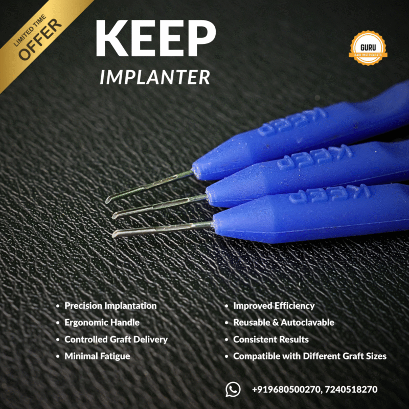Reduced “popping” in scarred/revision skinIn skin that’s more rigid (scars, prior surgery), sharp/needle implanters can cause more graft “pop-outs”. Using pre-made slits + dull insertion helps reduce that.